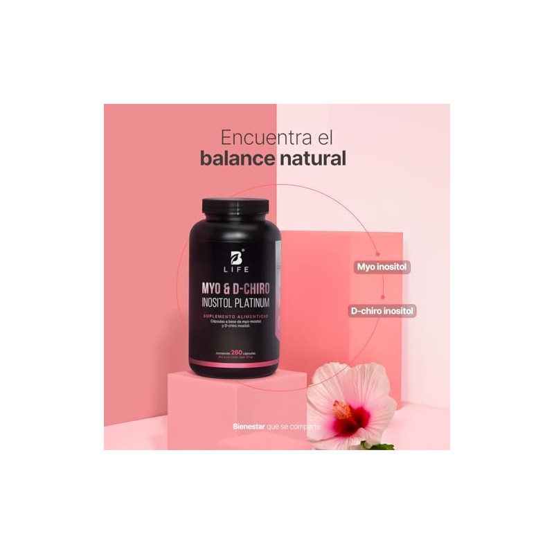 - ¡Disfruta la fórmula favorita de las mujeres, Myo & D-Chiro Inositol Platinum B Life! Increíble mezcla de Myo-Inositol y D-Chiro Inositol (Ratio de 40:1), una composición valiosa para tu bienestar, gracias a su máxima concentración de 2000 mg por porción, en comparación con otras presentaciones que solo contienen 705 mg. Contiene 260 cápsulas.