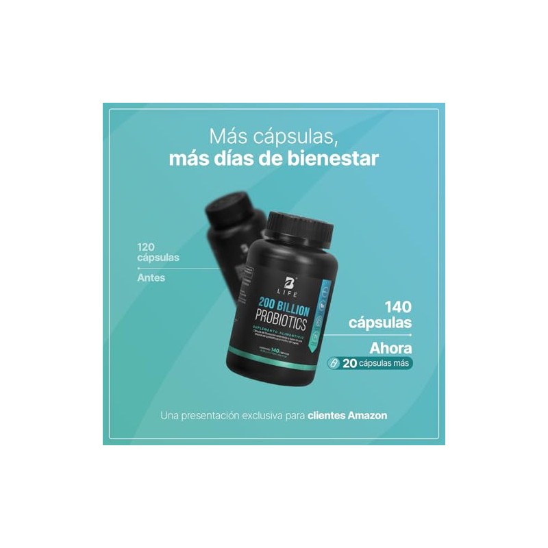 B Life Probiticos 200 Billones con 140 cpsulas 11 Cepas con Inulina de Agave...