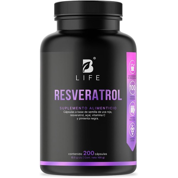 - ¡Resveratrol B Life, un poderoso antioxidante! Cada cápsula de 500 mg contiene una formulación especial a base de resveratrol, semillas de uva roja, açaí y vitamina C. Esta exclusiva fórmula está enriquecida con pimienta negra, lo que potencia la absorción de los nutrientes.