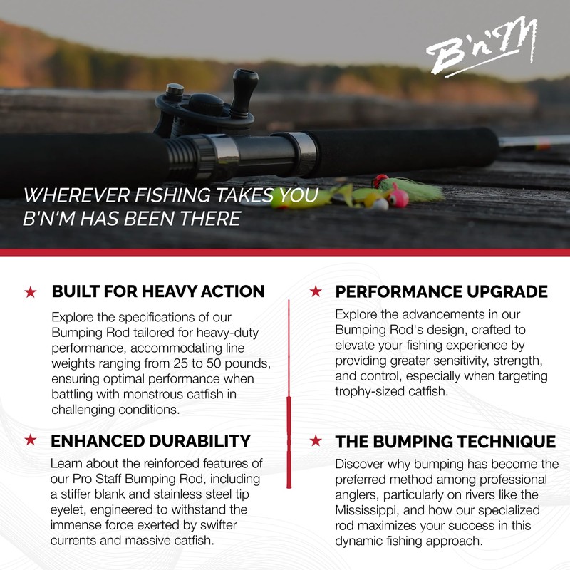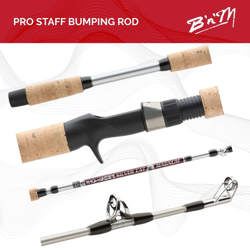 Our monster catching bumping rod! Features a stiff backbone, stainless steel guides, and a split-grip cork handle. Great for hauling in those trophy catfish!
