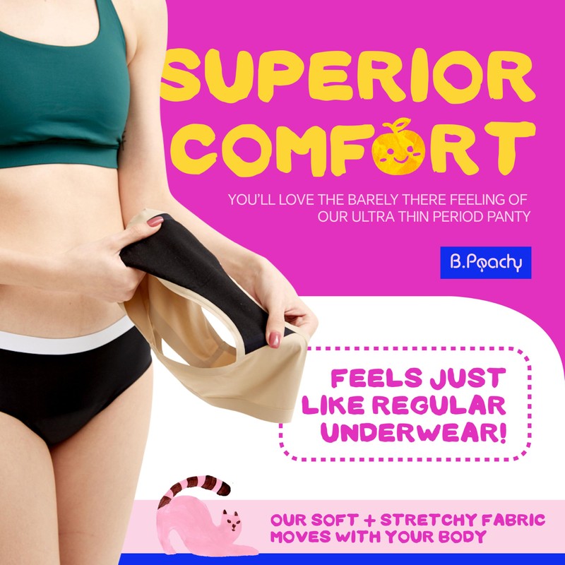 - SIMPLE & VERSATILE: B.Peachy period underwear simplifies your life by replacing other menstrual hygiene products. Or, use as a backup with tampons or menstrual cups on your heaviest days. No more pantyliners or disposable products necessary! Simply machine wash in cold water and hang to dry, or machine dry on low heat, ideally in a dryer bag, to extend product life. (High heat may cause damage)