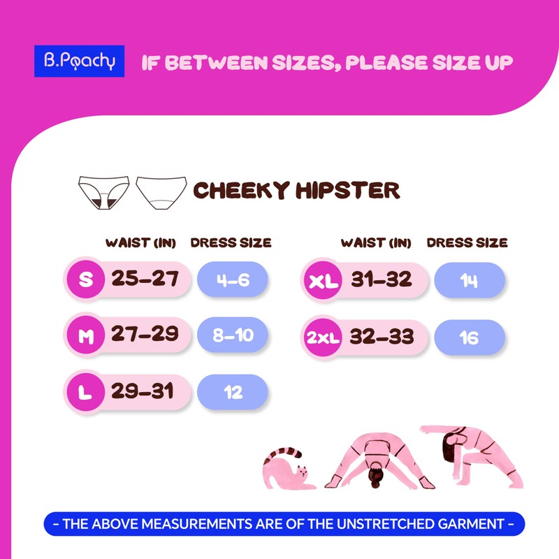 - CHEEKY PERIOD UNDERWEAR FOR TEENS: Life-changing underwear that absorbs your period! Comfortable, sustainable, and stylish. At B.Peachy, we want to empower girls and teens to embrace their periods and feel good about themselves all month long. NOTE: THIS STYLE RUNS SMALL, WE RECOMMEND SIZING UP.