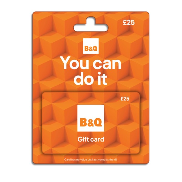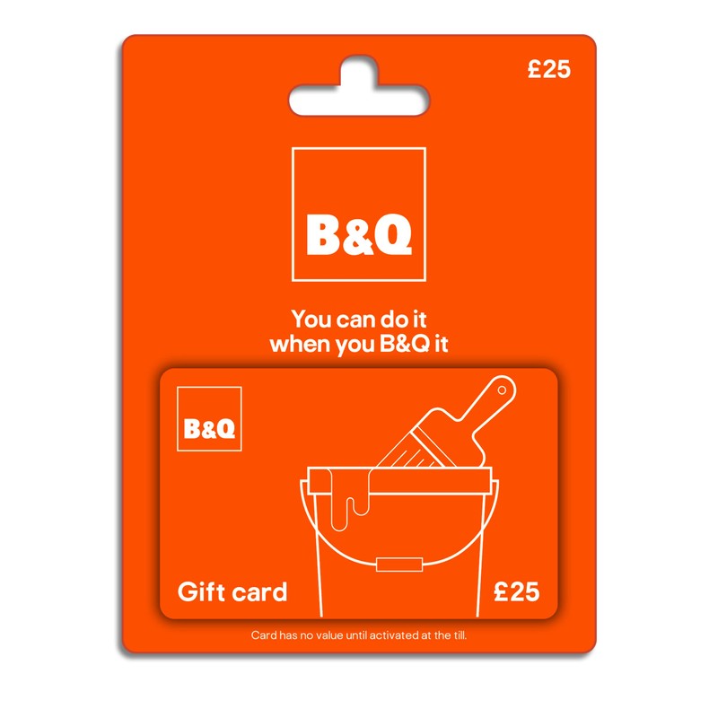 • This Gift Card can be used in full or part payment for any products purchased from diy.com, B&Q Call Centres & B&Q stores in the UK (except concessions and cafés in B&Q stores)