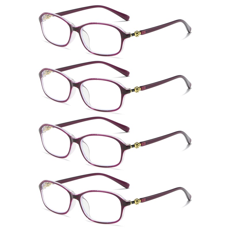 B&Q 4 Pairs Womens Oval Frame Blue Light Blocking Reading Glasses Classic Style Readers (Purple, 3.5, multiplier_x)