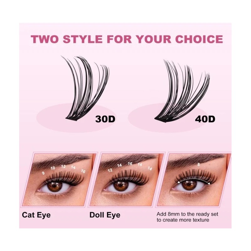 Cluster Lashes Individual 40D-D-Mix 10-18 Natural Clusters w/ Bottom Lashes