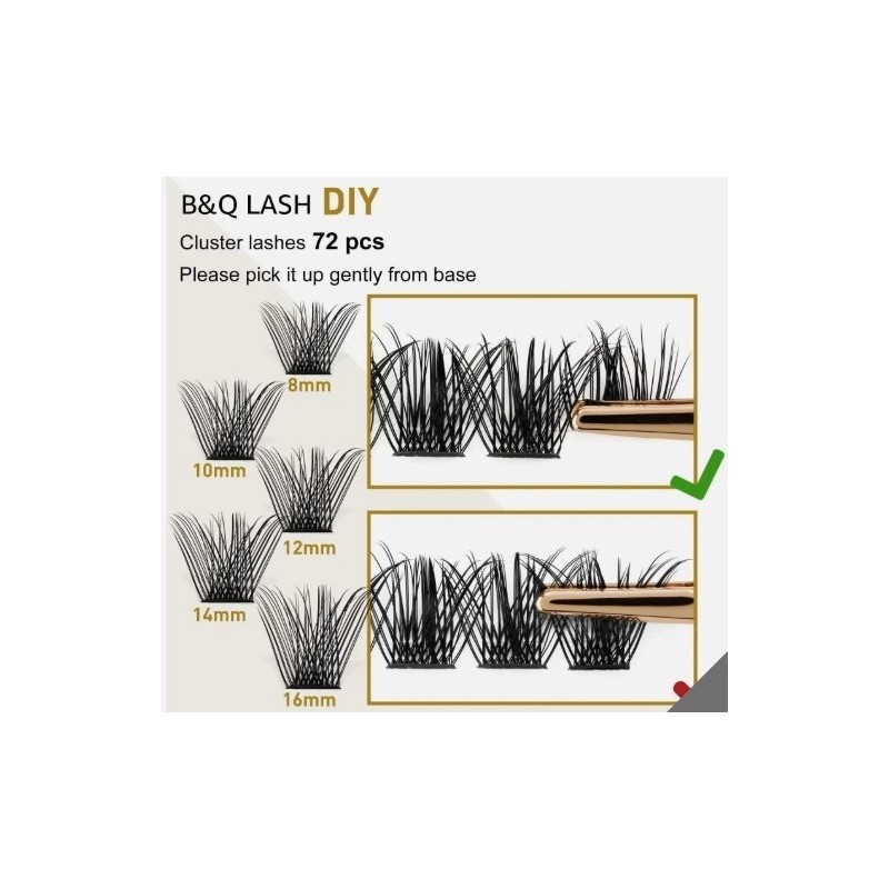 B&Qaugen B&Q Lash Clusters B12 Mixed (D-8-16) D Curl DIY Eyelash Extensions 72 pieces NIB