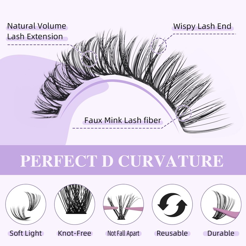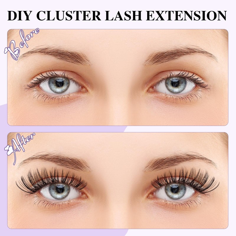 - Lash Extension Kit At Home:With DIY lash clusters kit, you can remove lash cluster and create a new style at any time,a little change can make a big difference. Eyelash extension kit is so convenient that you can diy your own beauty at home instead of salon,save more money and time for makeup.