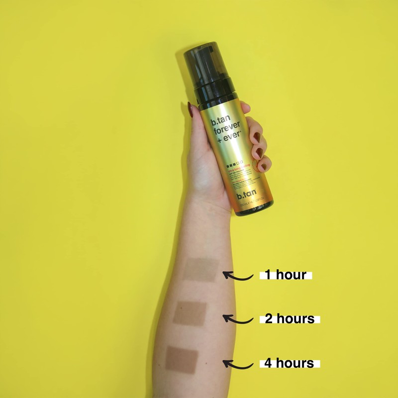 b.tan Kit de autobronceador de larga duración | b.tan Forever Bundle - Bronceador sin sol que dura hasta 11 días con aplicador de manoplas de autobronceado, sin olor a bronceado falso, sin molestias añadidas, vegano, libre de crueldad