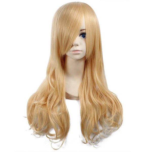 コスプレ用 ウィッグ ミディアム ロング ウェーブ ライト ゴールド 金髪 【こすねこ】 ヘタリア ベルギー風