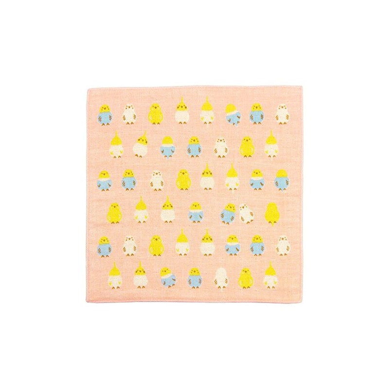 濱文様 和たおるセミウォッシュ(タオルハンカチ) インコ並べ ピンク
