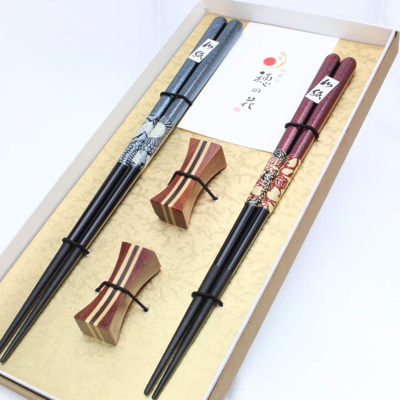 - Recommended Points: The Japanese and modern design shines with washi and glitter. The set includes a pair of Rosewood sandwich chopstick rests so it is recommended as a gift