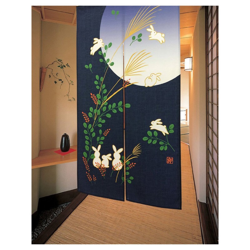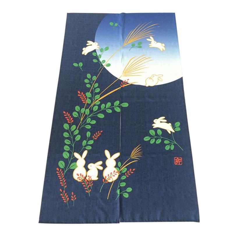 のれん 暖簾 和風 カーテン かわいい お洒落 デザイン 和室 洋室兼用 リビング 台所 洗面所 玄関用のれん 間仕切り 目隠し 省エネ エコ 満月 ウサギ 縁起物 開運のれん 風水 置物 ファブリック お部屋 飾り インテリア雑貨 ブルー