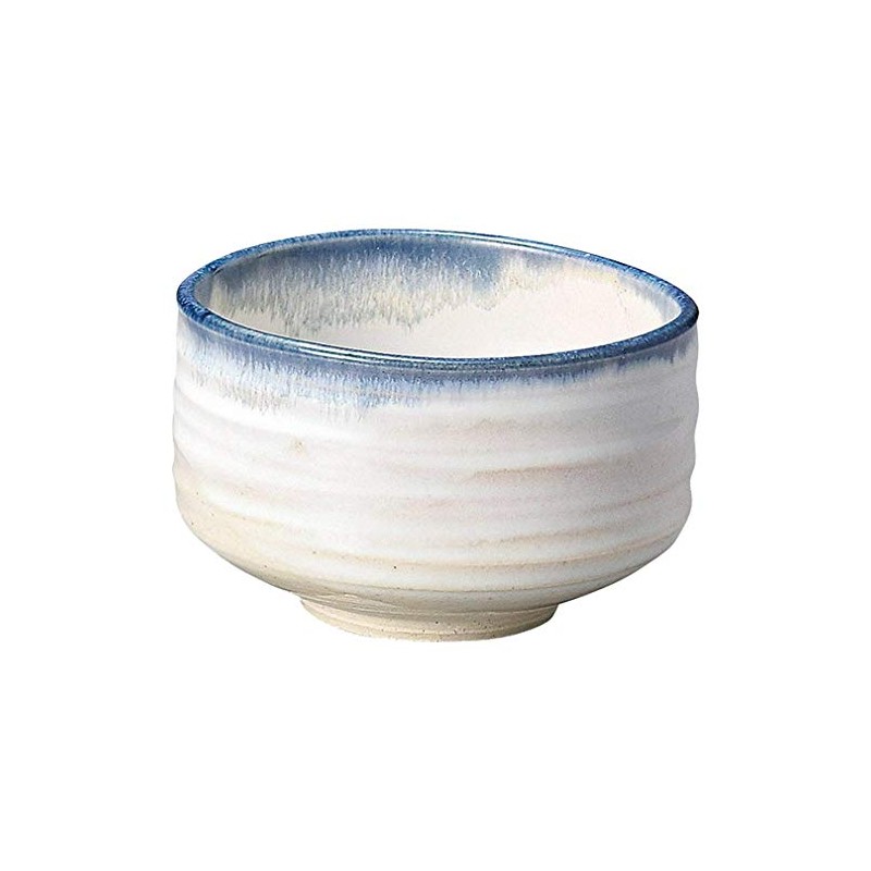 美濃焼【抹茶椀】白均窯呉須青流抹茶碗 カネタ作