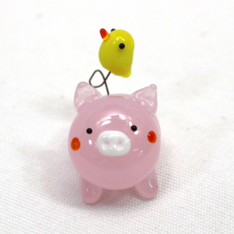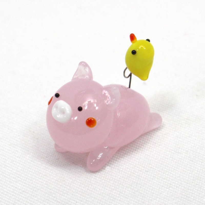かわいい手作り ガラス細工 ねそべりブタヒヨコ