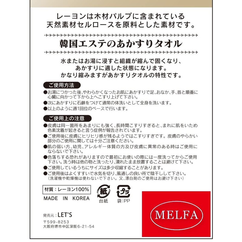 - 天然セルロースを原料とした素材なのでお肌にやさしいタオルです。