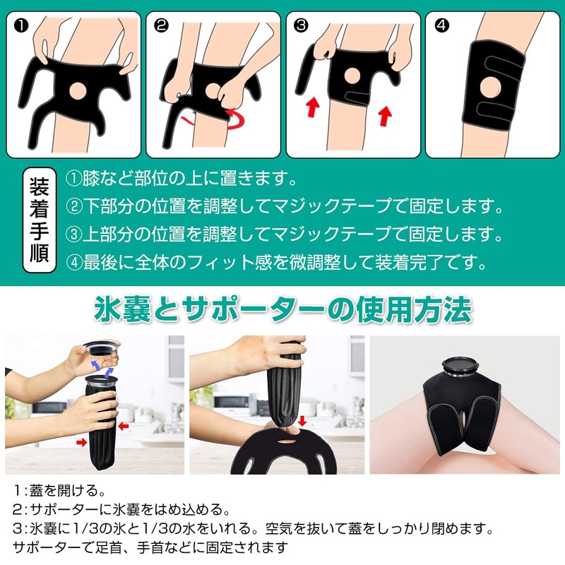 - 【マジックテープで調整可】強いマジックテープ設計で氷嚢をしっかり固定し、冷却/暖めることができます。サポーターのサイズを調整し、フィットしやすく、氷嚢の安定性を強めます。