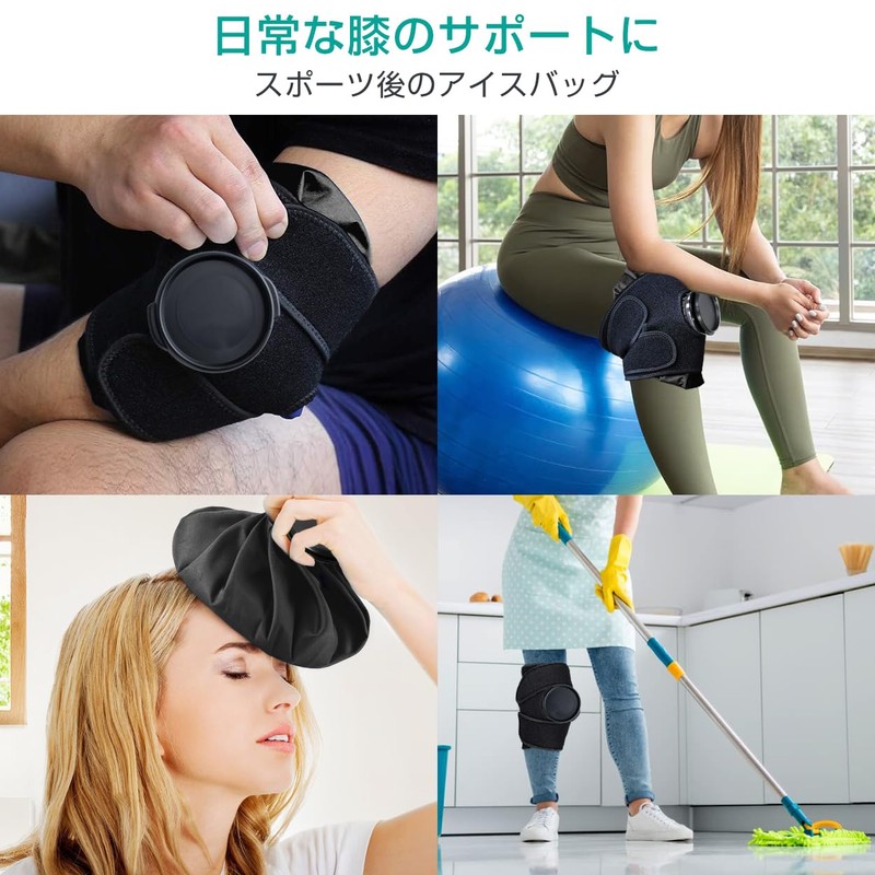 アイシングサポーター スポーツ用 膝用 膝 固定用サポーター 氷嚢 アイスバッグ 冷温両用 アイシングバッグ アイシング用品 日常生活 アイシングセット 肘 足首 大口径 氷バッグ 暑さ対策 ゴルフ 結露なし アイスバッグ 水漏れ防止 (ブラック)