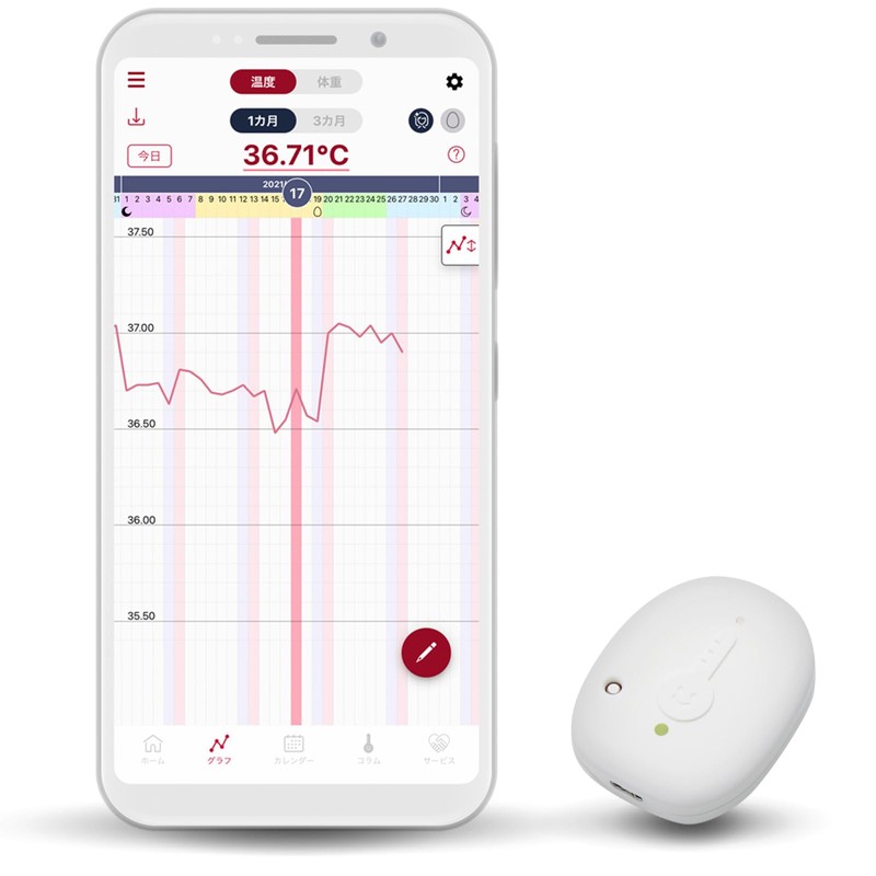 - ※「わたしの温度 デバイス」は、医療機器ではありません。衣服内温度データを利用して女性の周期を把握するための新しいセルフヘルスケアプロダクツです。