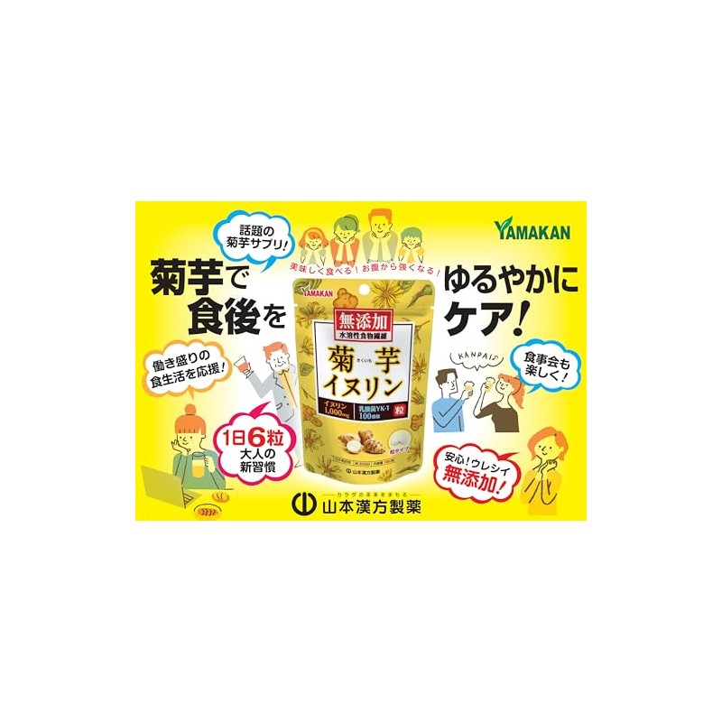 - 菊芋&イヌリンを無添加で錠剤に成功。イヌリン1000㎎ 乳酸菌YK-1 100億個。水溶性食物繊維(イヌリン)が大腸まで届き、乳酸菌(YK-1)と共に、餌となります。