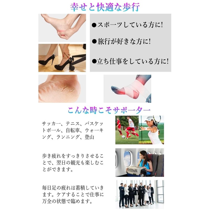 - 【自由調整】マジックテープでお好みの程度に装着することができます。立体設計で、男性も女性もほとんどの足にぴったりフィットします。通勤や通学、立ち仕事や営業の人には最適です。スポーツ、 ジョギング、マウンテン、バスケットボールなども適用です。 左右の区別はありません。日用、夜用、素足に直接セットして、そして靴下を履くできます。