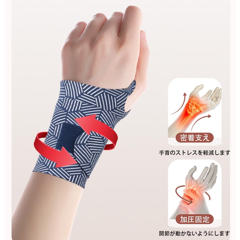 これは手首をサポートするために特別に設計された製品です、素材は柔らかく、手触りが良く、履きやすいので、手首への負担を軽減し、腱炎を予防・緩和します。