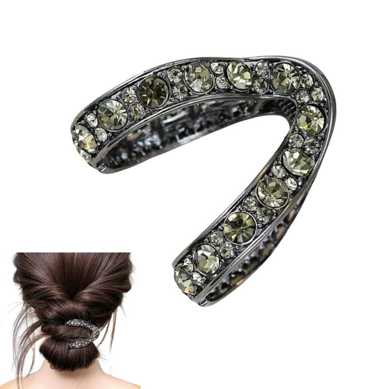 ヘアクロー ヘアクリップ おしゃれ ポニーテールクリップ ビジュー ラインストーン ヘアピン 髪飾り ヘアアクセサリー 髪留め (ブラック)