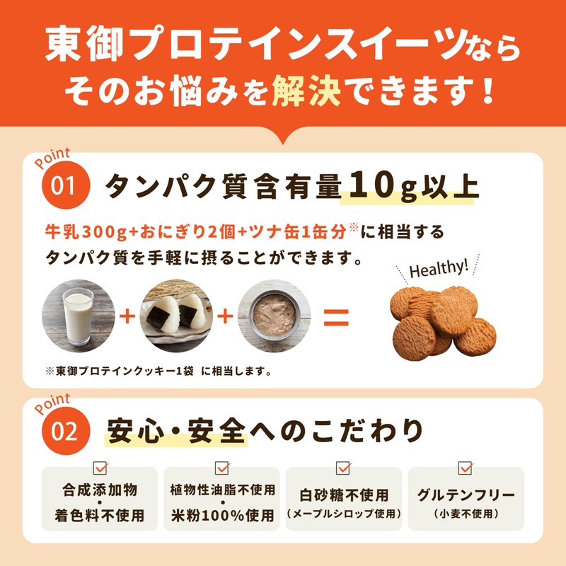 - おやつ感覚でタンパク質を栄養補給できる健康補助食品です。