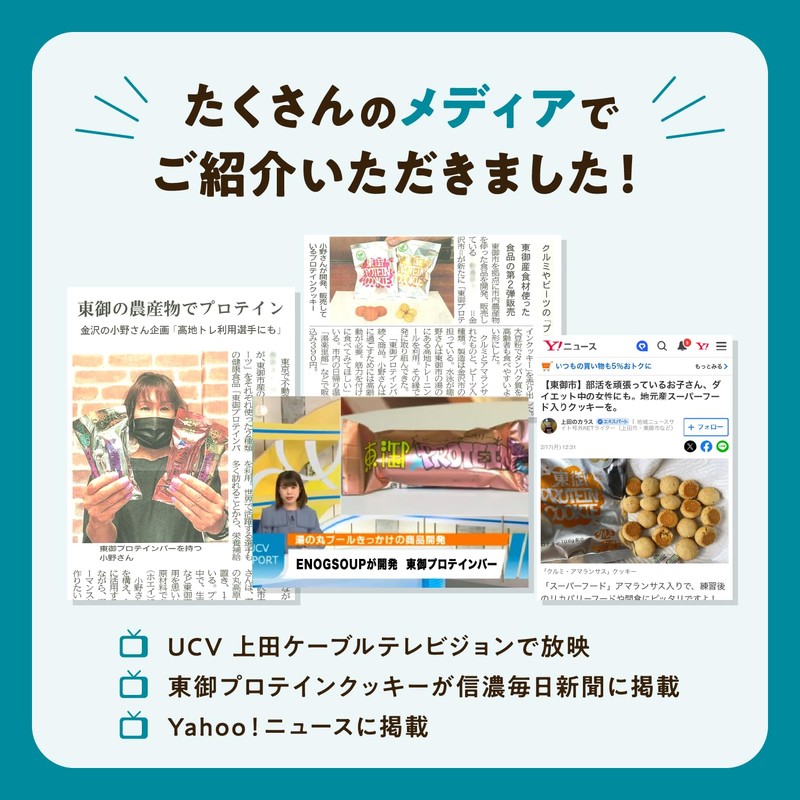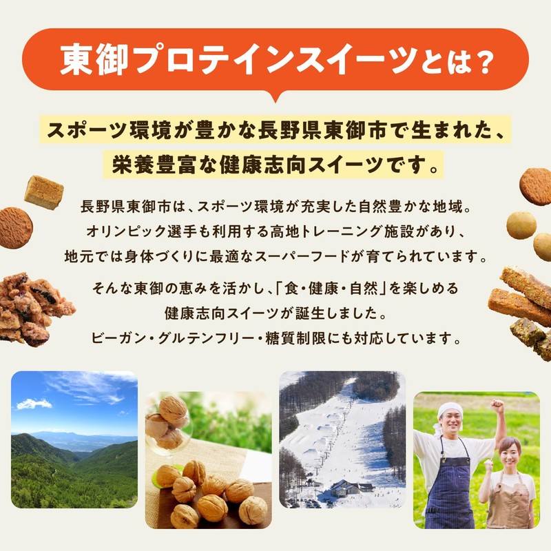 - 【東御ソイプロテインクッキービーツ】大豆粉、米粉、メープルシロップ、菜種油、てんさい糖、ビーツペースト、アーモンドパウダー、食塩食塩/ 【東御ソイプロテインクッキー胡桃アマランサス】メープルシロップ、大豆粉、小麦粉、菜種油、アーモンドパウダー、くるみ、アマランサス、食塩