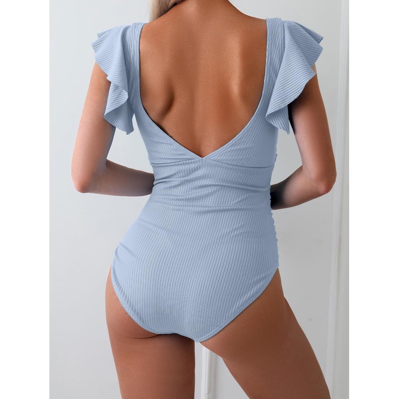 - Feature: Soft removable pads, v neckline, ruffle sleeve, criss-cross, Front cutout, ruched details at the waist, v back, fully lined, a modest but flattering swimwear