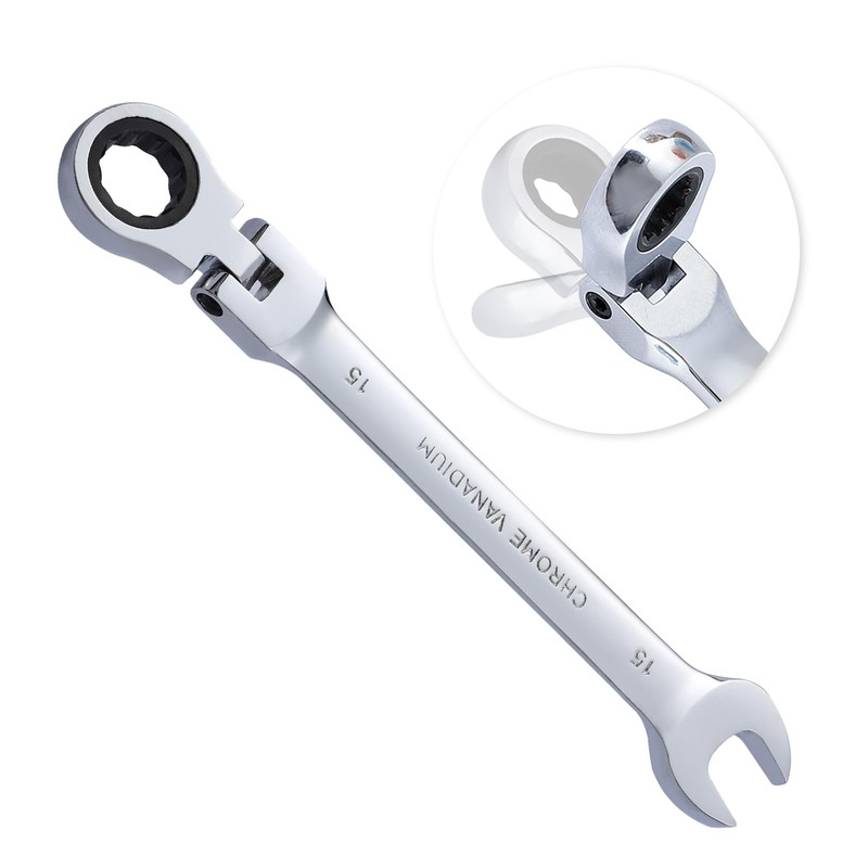 B4B BANG 4 BUCK 15mm Ratcheting Combination Wrench,Metric Flex Head Ratcheting Wrench Spanner with 72 Tooth and 5° Movement Chrome Vanadium Steel Gear Wrench