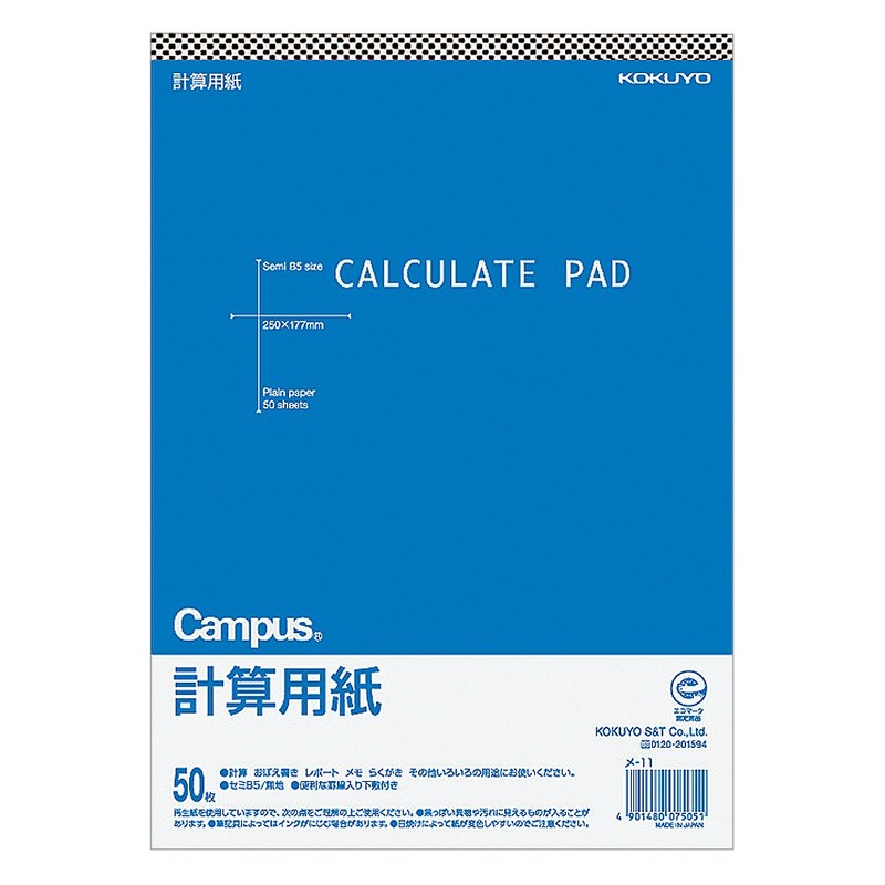 コクヨ キャンパスノート 計算用紙 B5 上質紙 薄口 50枚 メ-11
