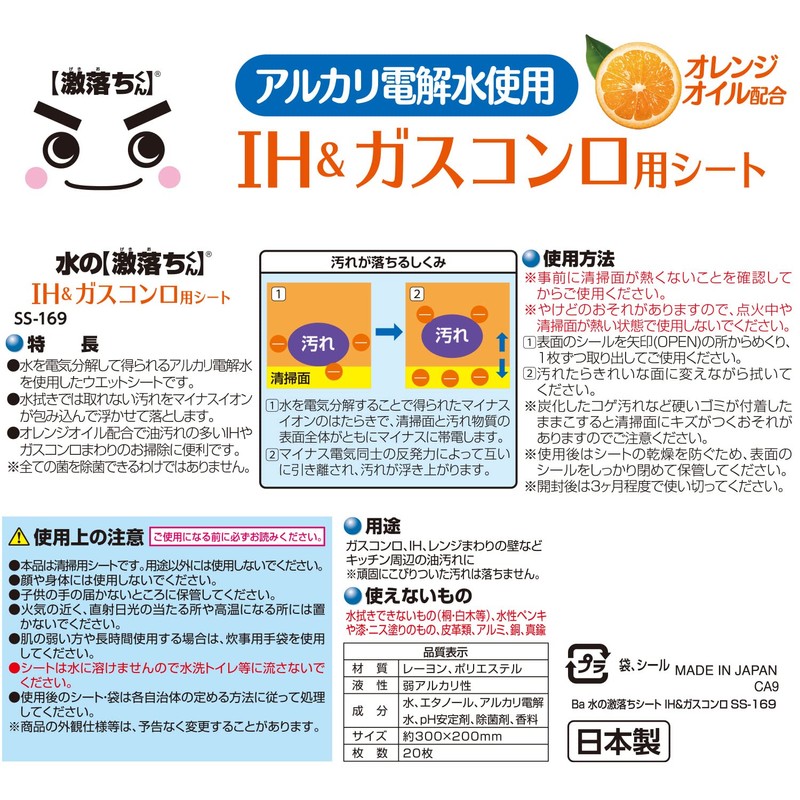 レック Ba 水の激落ちシート IH & ガスコンロ 20枚入 (アルカリ電解水使用) SS-169