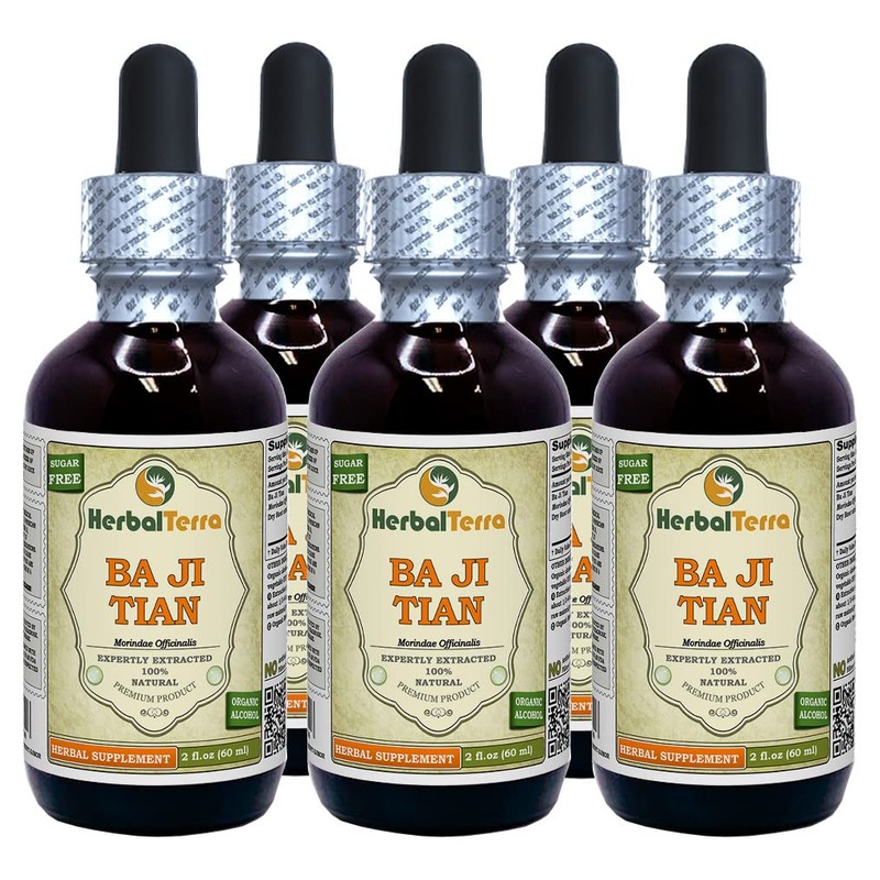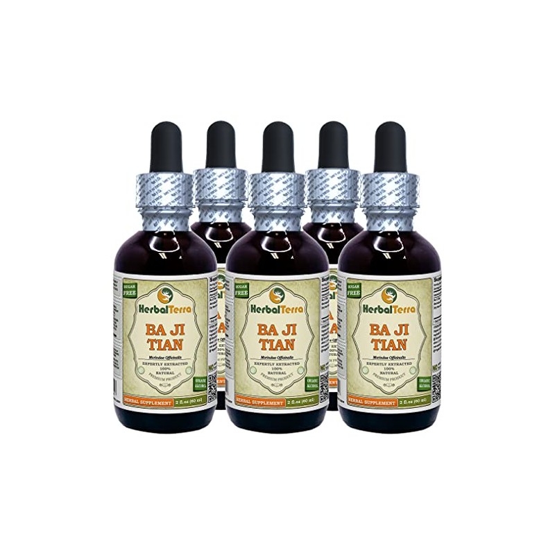 Ba Ji Tian, Morinda (Morindae Officinalis) Tincture, Dried Root Liquid Extract (Brand Name: HerbalTerra, Proudly Made in USA) 5x2 fl.oz (5x60 ml)