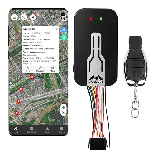 - [Functions]: There are many features which you require, such as over speed alarm, waterproof, GEO-fence, cut off the engine, motion alarm, real time positioning, remote controller (for 405B model), historical playback and so on. This device also can be connected with other platform.