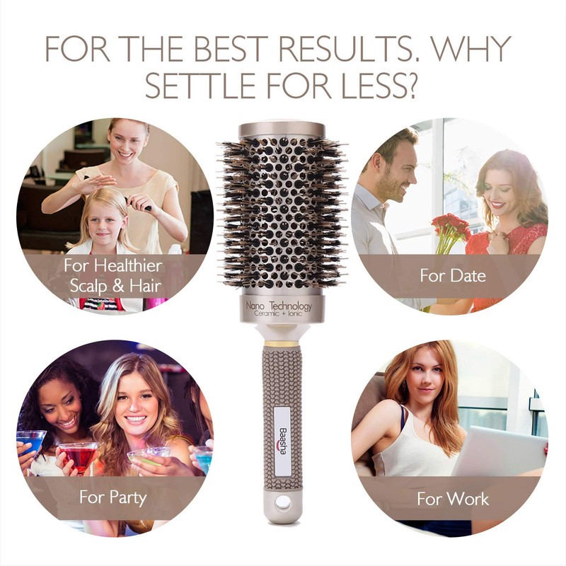 • WORK WONDERS FOR STYLING - Bassha Round Brush features boar bristles for smooth and shiny hair, and a vented ceramic barrel for faster and more consistent styling. It works wonders for smoothing, straightening & blow-drying your hair or creating soft bouncy curls. 2 Size Options: 1. Choose Large Round Brush 3 Inch for long hair or creating straighter hair style; 2. Choose Medium Large Round Brush 2 Inch for medium length to long hair or creating curlier hair style