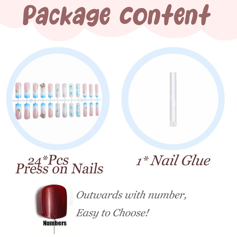 - Package Contains: You will get 24pcs long press on nails, 1pc nail glue. No need to buy other things, you can get the nail salon-like effect