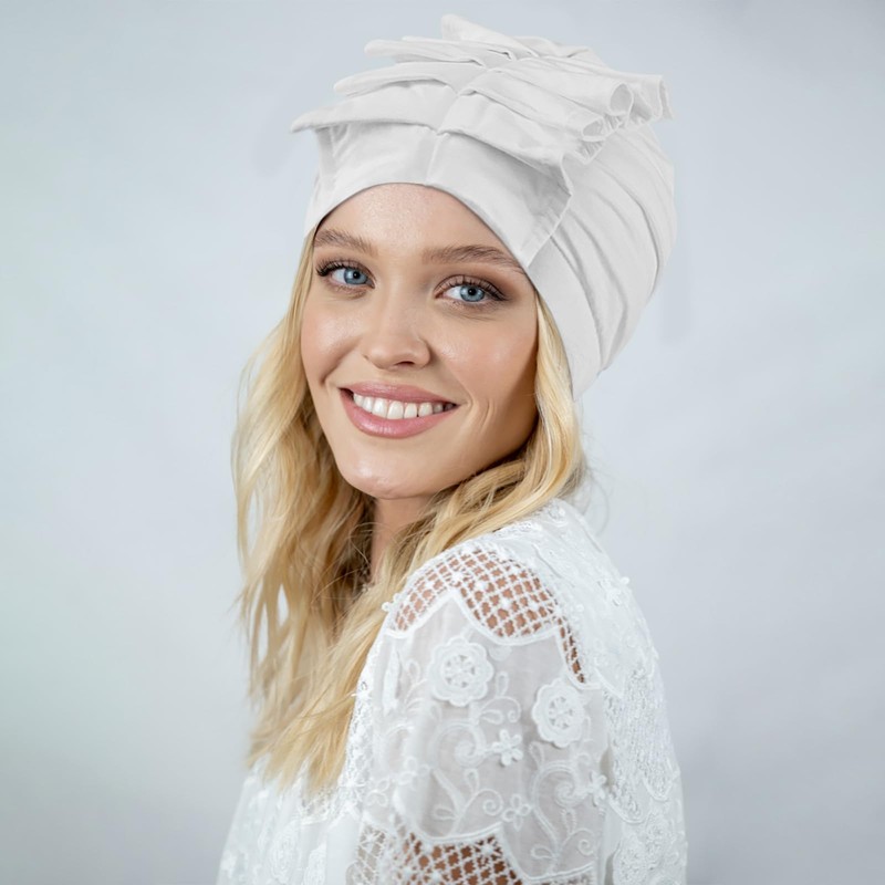- 【One Size Fits Most Women】Head circumference is 22.1-23.6 in (56-60 cm). The headband wrap has enough elastic and space to wrap thick, abundant hair. And the soft, smooth fabric can also be used as a sleep bonnet, providing gentle protection for your hair and scalp without any scratches. Perfect fit for short hair and/or experiencing hair loss due to cancer or chemo. The bohemian-style twist-pleated ruffle design adds a unique eye touch.
