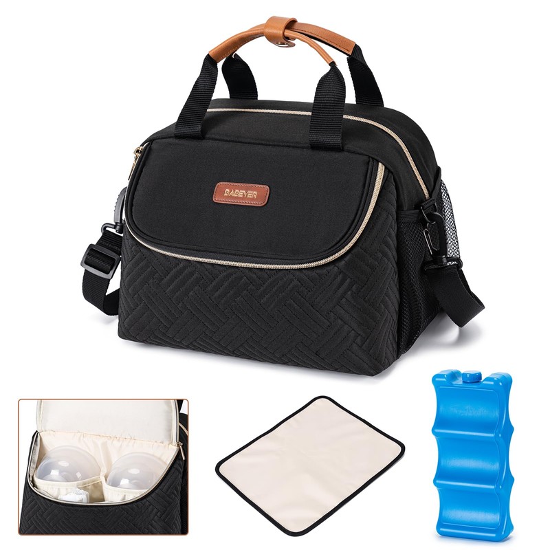 - Easy to Carry: BABEYER breastmilk cooler bag come with an adjustable shoulder strap which can be cross-body over the shoulder. Comfortable leather handle for easy put on the stroller. Come with a PEVA waterproof mat, it can be used to place baby bottles, breast pumps & accessories