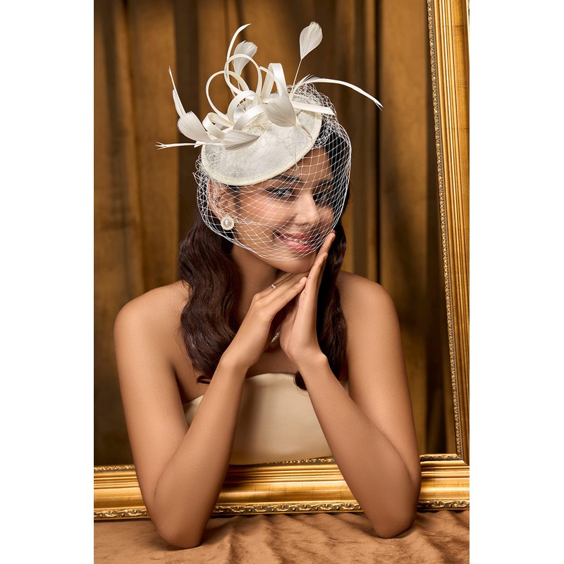 - Features: It is a timeless and elegant fascinator hat, beautifully decorated with birdcage veil, pillbox hat, feathers and ribbon knots.