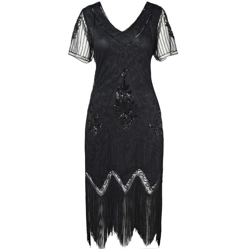 BABEYOND Great Gatsby Dresses for Women Plus Size Cocktail Dress 1920s Flapper Costume for Women Black