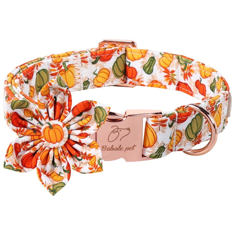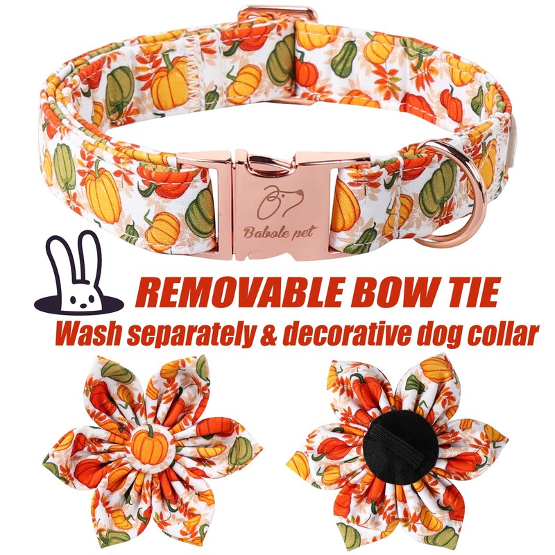 Babole Pet Fall Dog Flower Bow Tie Collar Adjustable Thanksgiving Boy Girl X-Small Puppy Dog Cotton Collars Rose Gold Metal Buckle Color Pumpkin Printed XS