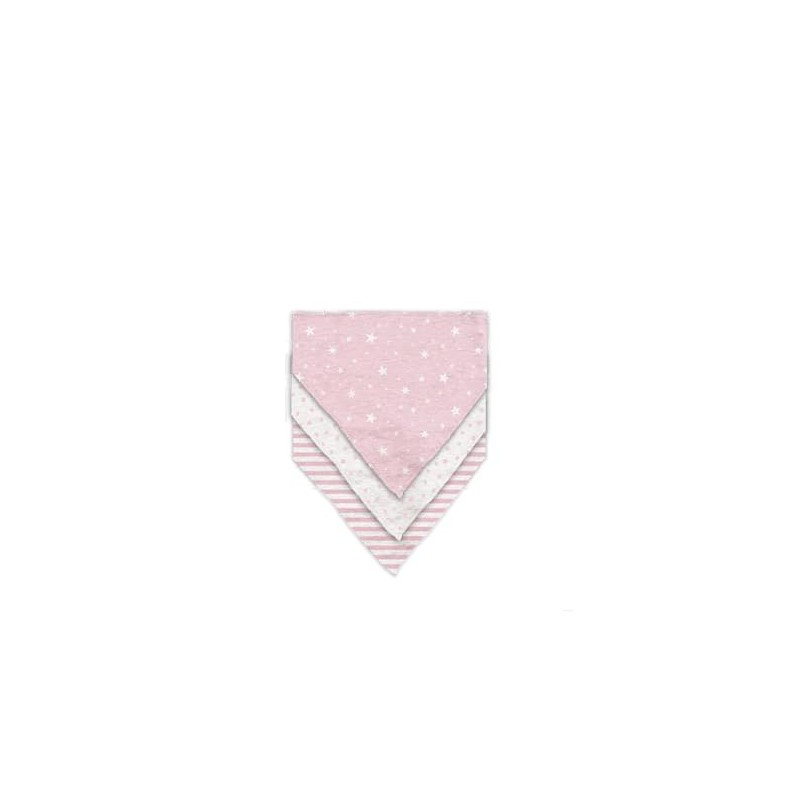 Baby Bandana Bibs, Pink and Grey Stars Polka Dots Stripes, Set of 3 with Snap Closure, Girls Bibs, Weaning, Teething