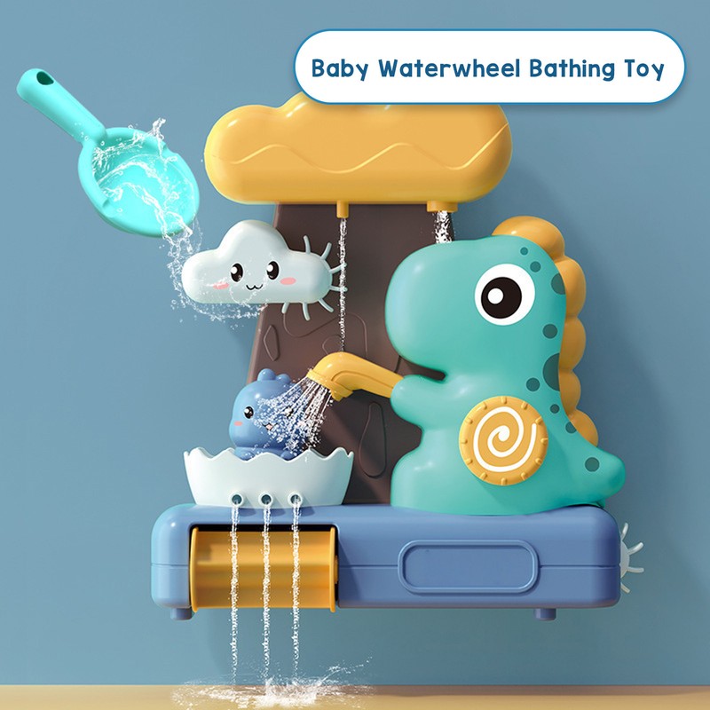 Baby Bath Toy Dinosaur Shaped Water Spraying Rotating Bathtub Waterwheel Toy with Suction Cups