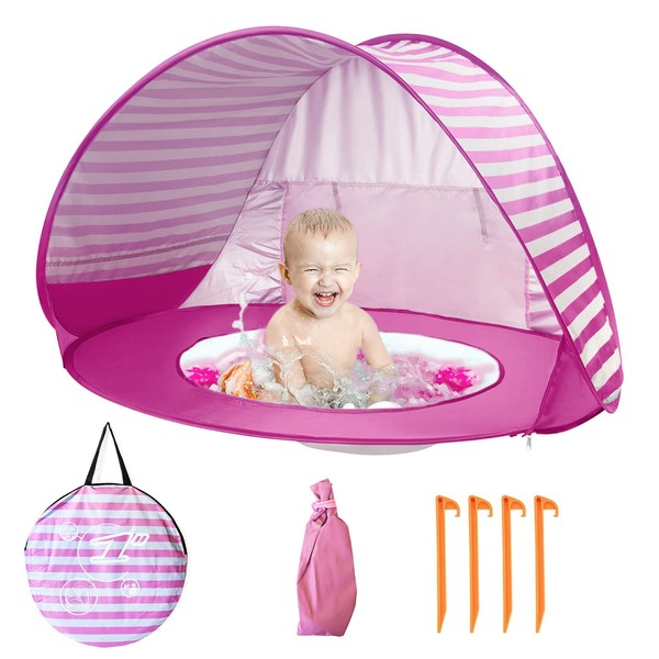 Baby Beach Tent with Pool, UPF 50+ Beach Sun Shelter Outdoor Tent for Aged 0-3 Baby and Kids, Parks and Beach Shade Portable Mini Pool, Pink