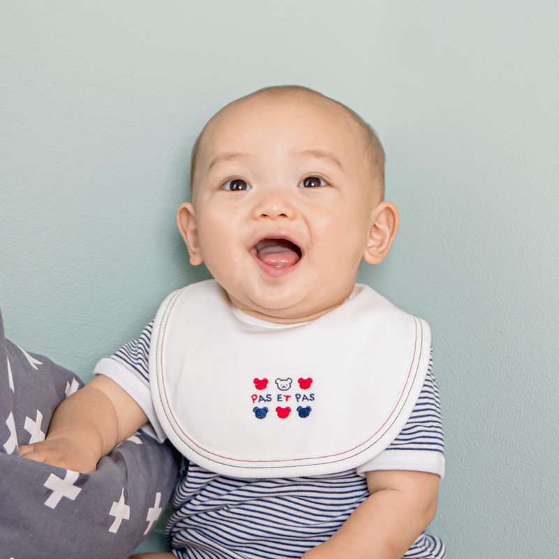 Baby Castle Bib, Tricolor Plain, Made in Japan, white (off-white)