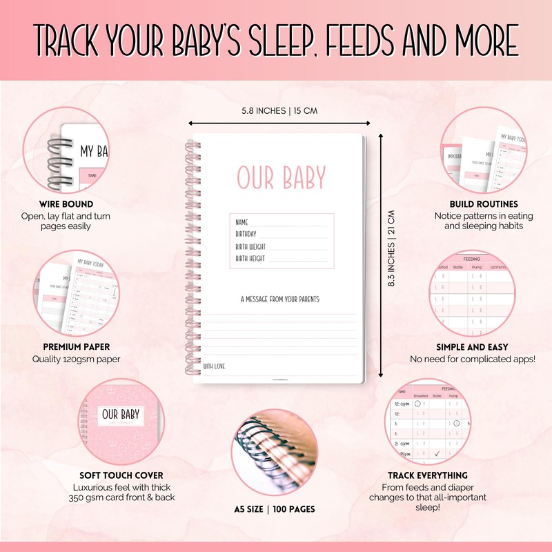 Baby Daily Logbook | Track Sleep, Feeds, Diapers, & More | Simple, Easy Routine Builder for New Parents | A5 (Pink)