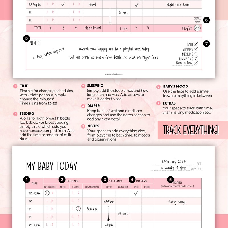 - App-Free Simplicity: No need for apps—just a pen and this easy-to-use log book to keep track of your baby's day.