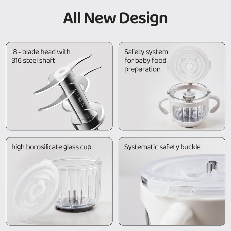 - 【Minimalist operation】Place the blade in the cup, put in the ingredients, cover the cup lid and fasten the safety buckle, place the machine and plug in the power. Simply press for 5 seconds to blend the ingredients into puree. After use, the cup, blade and lid can be directly put into the dishwasher for cleaning.