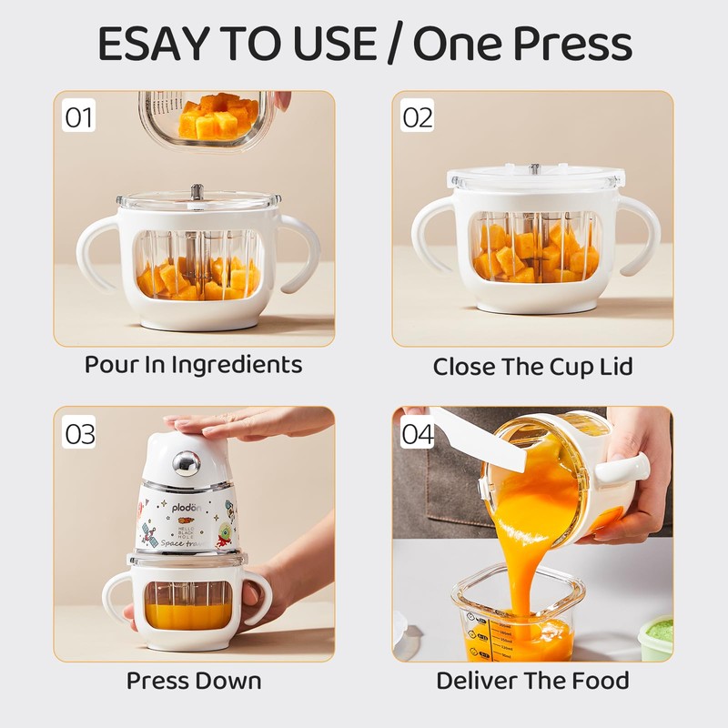 - 【What's in the Box】The Plodon baby food puree machine includes 1* baby food mill, 1* silicone spatula、1* brush,and pureed food filter plate.One set helps new parents to solve all issues for baby food