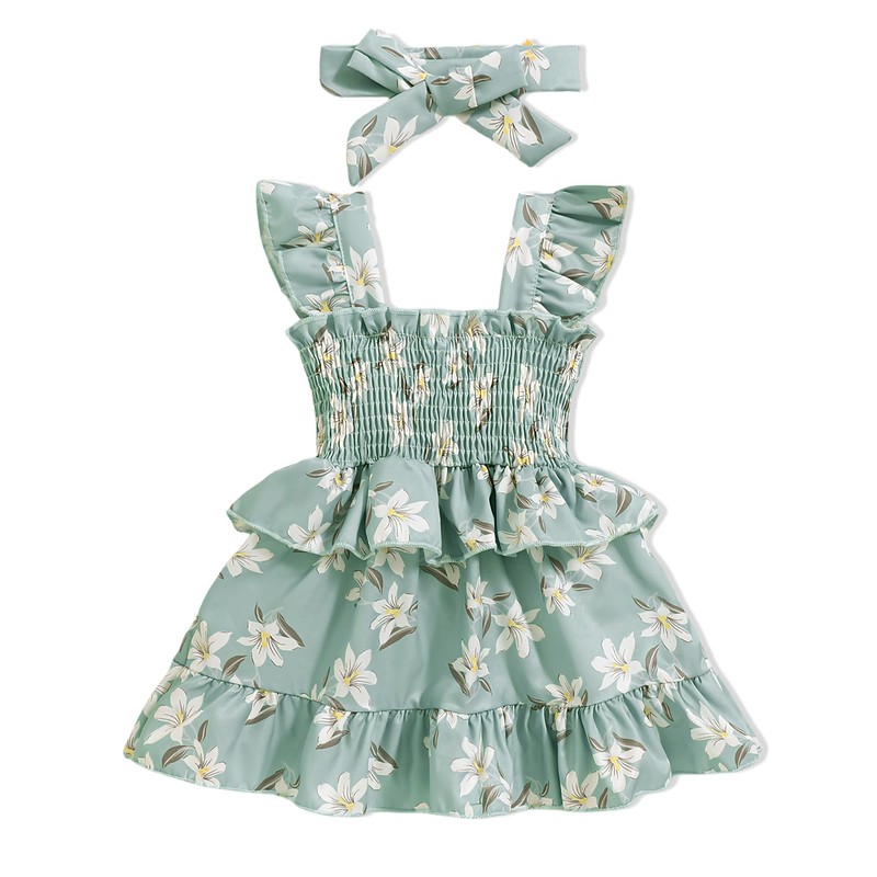 Baby Girl Dress 9-12 Months Summer Clothes Infant A-Line Floral Print Princess Dress Ruffle Dresses Casual Beach Boho Sundress Cute Outfits for Girl 6-12 Months+Bowknot Green